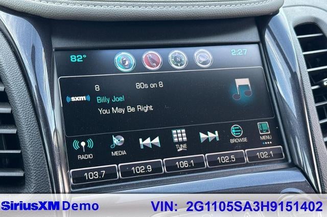 2017 Chevrolet Impala LT FWD Silver Ice Metallic ECOTEC 2.5L I4 DGI DOHC Impala LT 1LT, 4D Sedan, ECOTEC 2.5L I4 DGI DOHC, Silver Ice Metallic, Dark Titanium/Jet Black w/Premium Cloth Seat Trim, 100-Watt 6-Speaker System, 18" Painted Alloy Wheels, 3 USB Ports, 3.23 Final Drive Axle Ratio, 4-Way Manual Front Passenger Seat Adjuster, 4-Wheel Disc Brakes, 6 Speakers, 8-Way Power Driver Seat Adjuster, 8" Diagonal Color Infotainment Display, 800 Cold-Cranking Amps Battery, ABS brakes, Air Conditioning, Alloy wheels, AM/FM radio: SiriusXM, Apple CarPlay, Automatic temperature control, Brake assist, Bumpers: body-color, Compass, Delay-off headlights, Driver door bin, Driver Power Lumbar Seat Adjuster, Driver vanity mirror, Dual front impact airbags, Dual front side impact airbags, Electronic Stability Control, Emergency communication system: OnStar Guidance, Four wheel independent suspension, Front anti-roll bar, Front Bucket Seats, Front Center Armrest, Front dual zone A/C, Front License Plate Bracket, Front Passenger Power Lumbar Seat Adjuster, Front reading lights, Fully automatic headlights, Heated door mirrors, Illuminated entry, Knee airbag, Leather Shift Knob, Low tire pressure warning, Occupant sensing airbag, Overhead airbag, Overhead console, Panic alarm, Passenger door bin, Passenger vanity mirror, Power door mirrors, Power driver seat, Power steering, Power windows, Preferred Equipment Group 1LT, Premium audio system: Chevrolet MyLink, Premium Cloth/Leatherette Seat Trim, Radio data system, Radio: Chevrolet MyLink AM/FM Stereo, Rear anti-roll bar, Rear reading lights, Rear seat center armrest, Rear side impact airbag, Rear window defroster, Remote keyless entry, Security system, Single-Outlet Stainless-Steel Exhaust, SiriusXM Satellite Radio, Speed control, Speed-sensing steering, Split folding rear seat, Steering wheel mounted audio controls, Stop-Start Engine Control System, Tachometer, Telescoping steering wheel, Tilt steering wheel, Traction control, Trip computer, Turn signal indicator mirrors, Variably intermittent wipers, Impala LT 1LT, 4D Sedan, ECOTEC 2.5L I4 DGI DOHC, Silver Ice Metallic, Dark Titanium/Jet Black w/Premium Cloth Seat Trim, 100-Watt 6-Speaker System, 18" Painted Alloy Wheels, 3 USB Ports, 3.23 Final Drive Axle Ratio, 4-Way Manual Front Passenger Seat Adjuster, 4-Wheel Disc Brakes, 6 Speakers, 8-Way Power Driver Seat Adjuster, 8" Diagonal Color Infotainment Display, 800 Cold-Cranking Amps Battery, ABS brakes, Air Conditioning, Alloy wheels, AM/FM radio: SiriusXM, Apple CarPlay, Automatic temperature control, Brake assist, Bumpers: body-color, Compass, Delay-off headlights, Driver door bin, Driver Power Lumbar Seat Adjuster, Driver vanity mirror, Dual front impact airbags, Dual front side impact airbags, Electronic Stability Control, Emergency communication system: OnStar Guidance, Four wheel independent suspension, Front anti-roll bar, Front Bucket Seats, Front Center Armrest, Front dual zone A/C, Front License Plate Bracket, Front Passenger Power Lumbar Seat Adjuster, Front reading lights, Fully automatic headlights, Heated door mirrors, Illuminated entry, Knee airbag, Leather Shift Knob, Low tire pressure warning, Occupant sensing airbag, Overhead airbag, Overhead console, Panic alarm, Passenger door bin, Passenger vanity mirror, Power door mirrors, Power driver seat, Power steering, Power windows, Preferred Equipment Group 1LT, Premium audio system: Chevrolet MyLink, Premium Cloth/Leatherette Seat Trim, Radio data system, Radio: Chevrolet MyLink AM/FM Stereo, Rear anti-roll bar, Rear reading lights, Rear seat center armrest, Rear side impact airbag, Rear window defroster, Remote keyless entry, Security system, Single-Outlet Stainless-Steel Exhaust, SiriusXM Satellite Radio, Speed control, Speed-sensing steering, Split folding rear seat, Steering wheel mounted audio controls, Stop-Start Engine Control System, Tachometer, Telescoping steering wheel, Tilt steering wheel, Traction control, Trip comp
