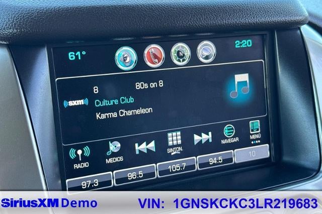 2020 Chevrolet Tahoe Premier 4WD Summit White EcoTec3 5.3L V8 Tahoe Premier, 4D Sport Utility, EcoTec3 5.3L V8, 4WD, Summit White, Cocoa/Dune w/Leather-Appointed Seat Trim, 10 Speakers, 1st & 2nd Row Color-Keyed Carpeted Floor Mats, 3.08 Rear Axle Ratio, 3rd Row 60/40 Power Fold Split-Bench, 3rd row seats: split-bench, 4-Wheel Antilock Disc Brakes w/Brake Assist, 4-Wheel Disc Brakes, 5 12-Volt Auxiliary Power Outlets, ABS brakes, Adaptive suspension, Adjustable pedals, Air Conditioning, Alloy wheels, AM/FM radio: SiriusXM, Apple CarPlay/Android Auto, Auto High-beam Headlights, Auto-dimming door mirrors, Auto-Dimming Inside Rear-View Mirror, Auto-dimming Rear-View mirror, Auto-leveling suspension, Automatic Emergency Braking, Automatic temperature control, Black Assist Steps w/Chrome Accent Strip, Bluetooth® for Phone, Bodyside moldings, Bose Centerpoint Premium 10-Speaker Surround Sound, Brake assist, Bumpers: body-color, Cargo Net, CD player, Color-Keyed Carpeting Floor Covering, Compass, Delay-off headlights, Driver door bin, Driver Inboard & Front Passenger Airbags, Driver vanity mirror, Dual front impact airbags, Dual front side impact airbags, Electronic Cruise Control w/Set & Resume Speed, Electronic Stability Control, Emergency communication system: OnStar and Chevrolet connected services capable, Enhanced Driver Alert Package (Y86), Exterior Parking Camera Rear, Floor Console, Fog Lamps, Forward Collision Alert, Front & Rear Park Assist, Front anti-roll bar, Front Bucket Seats, Front Center Armrest, Front dual zone A/C, Front fog lights, Front Heated Reclining Bucket Seats, Front Passenger 6-Way Power Seat Adjuster, Front reading lights, Front wheel independent suspension, Fully automatic headlights, Garage door transmitter, Hands Free Power Liftgate, HD Radio, Heated & Ventilated Driver & Front Passenger Seats, Heated 2nd Row Outboard Seats, Heated door mirrors, Heated front seats, Heated Leather Wrapped Steering Wheel, Heated rear seats, Heated steering wheel, High-Intensity Discharge Headlights, Illuminated entry, IntelliBeam Headlamps, Lane Change Alert w/Side Blind Zone Alert, Lane Keep Assist w/Lane Departure Warning, Leather steering wheel, License Plate Front Mounting Package, Low tire pressure warning, Magnetic Ride Control Suspension Package, Memory seat, Memory Settings, Navigation System, Occupant sensing airbag, Outside temperature display, Overhead airbag, Overhead console, Panic alarm, Passenger door bin, Passenger vanity mirror, Passive Entry System, Pedal memory, Perforated Leather-Appointed Seat Trim, Power door mirrors, Power driver seat, Power Liftgate, Power passenger seat, Power Release 2nd Row Bucket Seats, Power steering, Power Tilt & Telescopic Steering Column, Power windows, Power-Adjustable Accelerator & Brake Pedals, Power-Folding Heated Outside Mirrors, Preferred Equipment Group 1LZ, Premium audio system: Chevrolet MyLink, Push Button Keyless Start, Radio: Chevrolet Infotainment AM/FM Stereo w/Nav, Rain sensing wipers, Rear air conditioning, Rear anti-roll bar, Rear Cross Traffic Alert, Rear reading lights, Rear window defroster, Rear window wiper, Remote Keyless Entry, Remote keyless entry, Remote Vehicle Start, Roof-Mounted Luggage Rack Side Rails, Security system, Single-Slot CD/MP3 Player, SiriusXM NavTraffic, SiriusXM Radio, Speed control, Speed-sensing steering, Split folding rear seat, Spoiler, Steering wheel memory, Steering wheel mounted audio controls, Tachometer, Telescoping steering wheel, Tilt steering wheel, Traction control, Trip computer, Turn signal indicator mirrors, Universal Home Remote, Variably intermittent wipers, Ventilated front seats, Voltmeter, Wheels: 20" x 9" Polished-Aluminum, Wireless Charging, Tahoe Premier, 4D Sport Utility, EcoTec3 5.3L V8, 4WD, Summit White, Cocoa/Dune w/Leather-Appointed Seat Trim, 10 Speakers, 1st & 2nd Row Color-Keyed Carpeted Floor Mats, 3.08 Rear Axle Ratio, 3rd Row 60/40 Power Fold Split-Bench, 3rd row seats: split-bench, 4-Wheel Anti