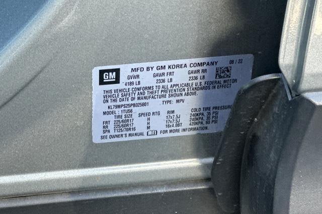 Certified. 2023 Chevrolet TrailBlazer LT FWD Sterling Gray Metallic 1.2L Ecotec Turbo DOHC DI w/VVT TrailBlazer LT, Chevrolet Certified Pre-Owned Certified, 4D Sport Utility, 1.2L Ecotec Turbo DOHC DI w/VVT, Sterling Gray Metallic, Jet Black w/Cloth Seat Trim, 2-Way Adjustable Front Head Restraints, 2-Way Power Driver Lumbar Seat Adjuster, 4-Way Manual Front Passenger Seat Adjuster, 4-Wheel Disc Brakes, 5.45 Axle Ratio, 6 Speakers, 6-Speaker Audio System Feature, 7" Diagonal Color Touchscreen, 8-Way Power Driver Seat Adjuster, ABS brakes, Air Conditioning, Alloy wheels, AM/FM radio: SiriusXM, Auto High-beam Headlights, Brake assist, Bumpers: body-color, Cloth Seat Trim, Compass, Delay-off headlights, Driver door bin, Driver vanity mirror, Dual front impact airbags, Dual front side impact airbags, Electronic Stability Control, Emergency communication system: OnStar and Chevrolet connected services capable, Exterior Parking Camera Rear, Flat-Folding Front Passenger Seatback, Front anti-roll bar, Front Bucket Seats, Front Center Armrest, Front fog lights, Front License Plate Bracket, Front reading lights, Front wheel independent suspension, Fully automatic headlights, Heated door mirrors, Heated Driver & Front Passenger Seats, Heated front seats, Illuminated entry, Knee airbag, Low tire pressure warning, Occupant sensing airbag, Overhead airbag, Overhead console, Panic alarm, Passenger door bin, Passenger vanity mirror, Power door mirrors, Power driver seat, Power steering, Power windows, Preferred Equipment Group 1LT, Radio data system, Radio: Chevrolet Infotainment 3 System, Rear side impact airbag, Rear window defroster, Rear window wiper, Remote keyless entry, Ride & Handling Suspension, Security system, SiriusXM Radio, Speed control, Split folding rear seat, Spoiler, Steering wheel mounted audio controls, Tachometer, Telescoping steering wheel, Tilt steering wheel, Traction control, Trip computer, Variably intermittent wipers, Wheels: 17" High Gloss Black Machined Aluminum, Wireless Apple CarPlay/Android Auto, TrailBlazer LT, 4D Sport Utility, 1.2L Ecotec Turbo DOHC DI w/VVT, Sterling Gray Metallic, Jet Black w/Cloth Seat Trim, 2-Way Adjustable Front Head Restraints, 2-Way Power Driver Lumbar Seat Adjuster, 4-Way Manual Front Passenger Seat Adjuster, 4-Wheel Disc Brakes, 5.45 Axle Ratio, 6 Speakers, 6-Speaker Audio System Feature, 7" Diagonal Color Touchscreen, 8-Way Power Driver Seat Adjuster, ABS brakes, Air Conditioning, Alloy wheels, AM/FM radio: SiriusXM, Auto High-beam Headlights, Brake assist, Bumpers: body-color, Cloth Seat Trim, Compass, Delay-off headlights, Driver door bin, Driver vanity mirror, Dual front impact airbags, Dual front side impact airbags, Electronic Stability Control, Emergency communication system: OnStar and Chevrolet connected services capable, Exterior Parking Camera Rear, Flat-Folding Front Passenger Seatback, Front anti-roll bar, Front Bucket Seats, Front Center Armrest, Front fog lights, Front License Plate Bracket, Front reading lights, Front wheel independent suspension, Fully automatic headlights, Heated door mirrors, Heated Driver & Front Passenger Seats, Heated front seats, Illuminated entry, Knee airbag, Low tire pressure warning, Occupant sensing airbag, Overhead airbag, Overhead console, Panic alarm, Passenger door bin, Passenger vanity mirror, Power door mirrors, Power driver seat, Power steering, Power windows, Preferred Equipment Group 1LT, Radio data system, Radio: Chevrolet Infotainment 3 System, Rear side impact airbag, Rear window defroster, Rear window wiper, Remote keyless entry, Ride & Handling Suspension, Security system, SiriusXM Radio, Speed control, Split folding rear seat, Spoiler, Steering wheel mounted audio controls, Tachometer, Telescoping steering wheel, Tilt steering wheel, Traction control, Trip computer, Variably intermittent wipers, Wheels: 17" High Gloss Black Machined Aluminum, Wireless Apple CarPlay/Android Auto. CARFAX One-Owner. Clean CARFAX.