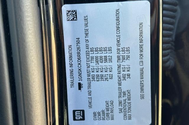 2024 Chevrolet Suburban LT 4WD Black EcoTec3 5.3L V8 Suburban LT, 4D Sport Utility, EcoTec3 5.3L V8, 4WD, Black, Gideon/Very Dark Atmosphere Leather, 10-Way Power Driver & Passenger Seat Adjusters, 1st & 2nd Row Color-Keyed Carpeted Floor Mats, 3.23 Rear Axle Ratio, 3rd row seats: split-bench, 4-Wheel Disc Brakes, 9 Speakers, ABS brakes, Air Conditioning, Alloy wheels, AM/FM radio: SiriusXM with 360L, Apple CarPlay/Android Auto, Auto High-beam Headlights, Auto-Dimming Inside Rear-View Mirror, Auto-dimming Rear-View mirror, Automatic temperature control, Bose 9-Speaker Stereo Audio System Feature, Brake assist, Bright Front & Rear Door Sill Plates, Bumpers: body-color, Color-Keyed Carpeting Floor Covering, Compass, Delay-off headlights, Deleted 3 Years of Remote Access, Driver & Front Outboard Passenger Airbags, Driver door bin, Driver vanity mirror, Dual front impact airbags, Dual front side impact airbags, Electronic Stability Control, Emergency communication system: OnStar and Chevrolet connected services capable, Enhanced Driver Information Center, Floor Console w/Storage Area, Four wheel independent suspension, Front anti-roll bar, Front Bucket Seats, Front Center Armrest, Front dual zone A/C, Front reading lights, Fully automatic headlights, Garage door transmitter, Hands-Free Rear Power Programmable Liftgate, Heated door mirrors, Heated Driver & Front Passenger Seats, Heated front seats, Illuminated entry, Infotainment Display, Leather-Appointed Seating, LED Daytime Running Lamps, License Plate Front Mounting Package, Low tire pressure warning, Memory seat, Memory Settings For Driver, Navigation System, Occupant sensing airbag, Outside temperature display, Overhead airbag, Overhead console, Panic alarm, Passenger door bin, Passenger vanity mirror, Power door mirrors, Power driver seat, Power Liftgate, Power passenger seat, Power steering, Power windows, Preferred Equipment Group 1LT, Premium audio system: Chevrolet Infotainment 3 Premium, Premium Smooth Ride Suspension, Radio: Chevrolet Infotainment 3 Premium System, Rain sensing wipers, Rear air conditioning, Rear anti-roll bar, Rear reading lights, Rear seat center armrest, Rear window defroster, Rear window wiper, Remote keyless entry, Remote Start, Roof rack: xxxxxx, Security system, SiriusXM w/360L, Speed control, Speed-sensing steering, Split folding rear seat, Spoiler, Steering wheel mounted audio controls, Tachometer, Telescoping steering wheel, Tilt steering wheel, Traction control, Trip computer, Universal Home Remote, Variably intermittent wipers, Voltmeter, Wheels: 18" x 8.5" Bright Silver Painted Aluminum, Wireless Charging, Wrapped Steering Wheel, Suburban LT, 4D Sport Utility, EcoTec3 5.3L V8, 4WD, Black, Gideon/Very Dark Atmosphere Leather, 10-Way Power Driver & Passenger Seat Adjusters, 1st & 2nd Row Color-Keyed Carpeted Floor Mats, 3.23 Rear Axle Ratio, 3rd row seats: split-bench, 4-Wheel Disc Brakes, 9 Speakers, ABS brakes, Air Conditioning, Alloy wheels, AM/FM radio: SiriusXM with 360L, Apple CarPlay/Android Auto, Auto High-beam Headlights, Auto-Dimming Inside Rear-View Mirror, Auto-dimming Rear-View mirror, Automatic temperature control, Bose 9-Speaker Stereo Audio System Feature, Brake assist, Bright Front & Rear Door Sill Plates, Bumpers: body-color, Color-Keyed Carpeting Floor Covering, Compass, Delay-off headlights, Deleted 3 Years of Remote Access, Driver & Front Outboard Passenger Airbags, Driver door bin, Driver vanity mirror, Dual front impact airbags, Dual front side impact airbags, Electronic Stability Control, Emergency communication system: OnStar and Chevrolet connected services capable, Enhanced Driver Information Center, Floor Console w/Storage Area, Four wheel independent suspension, Front anti-roll bar, Front Bucket Seats, Front Center Armrest, Front dual zone A/C, Front reading lights, Fully automatic headlights, Garage door transmitter, Hands-Free Rear Power Programmable Liftgate, Heated door mirrors, Heated Driver & Front Passenge