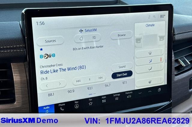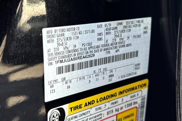 2024 Ford Expedition Limited 4WD Agate Black Metallic EcoBoost 3.5L V6 GTDi DOHC 24V Twin Turbocharged Expedition Limited, 4D Sport Utility, EcoBoost 3.5L V6 GTDi DOHC 24V Twin Turbocharged, 4WD, Agate Black Metallic, Sandstone w/Heated & Ventilated Leather Front Captain's Chairs, 12 Speakers, 3.31 Axle Ratio, 3rd row seats: split-bench, 4-Wheel Disc Brakes, ABS brakes, Adjustable pedals, Air Conditioning, Alloy wheels, AM/FM radio: SiriusXM with 360L, Auto High-beam Headlights, Auto-dimming door mirrors, Auto-dimming Rear-View mirror, Automatic temperature control, Brake assist, Bumpers: body-color, Compass, Delay-off headlights, Driver door bin, Driver vanity mirror, Dual front impact airbags, Dual front side impact airbags, Electronic Stability Control, Emergency communication system: SYNC 4 911 Assist, Equipment Group 301A Mid Package, Exterior Parking Camera Rear, Four wheel independent suspension, Front anti-roll bar, Front Bucket Seats, Front Center Armrest, Front dual zone A/C, Front fog lights, Front License Plate Bracket, Front reading lights, Fully automatic headlights, Garage door transmitter, Heated & Ventilated Leather Front Captain's Chairs, Heated door mirrors, Heated front seats, Heated rear seats, Heated steering wheel, Illuminated entry, Leather steering wheel, Low tire pressure warning, Memory seat, Navigation system: Connected Navigation, Occupant sensing airbag, Outside temperature display, Overhead airbag, Overhead console, Panic alarm, Panoramic Vista Roof, Passenger door bin, Passenger vanity mirror, Pedal memory, Power door mirrors, Power driver seat, Power Liftgate, Power moonroof, Power passenger seat, Power steering, Power windows, Radio data system, Radio: B&O Sound System by Bang & Olufsen, Rain sensing wipers, Rear air conditioning, Rear anti-roll bar, Rear reading lights, Rear window defroster, Rear window wiper, Reclining 3rd row seat, Remote keyless entry, Security system, SiriusXM w/360L, Speed control, Speed-sensing steering, Speed-Sensitive Wipers, Split folding rear seat, Spoiler, Steering wheel memory, Steering wheel mounted audio controls, SYNC 4 w/Enhanced Voice Recognition, Tachometer, Telescoping steering wheel, Traction control, Trip computer, Turn signal indicator mirrors, Variably intermittent wipers, Ventilated front seats, Voltmeter, Wheels: 20" Bright Machined Aluminum, Expedition Limited, 4D Sport Utility, EcoBoost 3.5L V6 GTDi DOHC 24V Twin Turbocharged, 4WD, Agate Black Metallic, Sandstone w/Heated & Ventilated Leather Front Captain's Chairs, 12 Speakers, 3.31 Axle Ratio, 3rd row seats: split-bench, 4-Wheel Disc Brakes, ABS brakes, Adjustable pedals, Air Conditioning, Alloy wheels, AM/FM radio: SiriusXM with 360L, Auto High-beam Headlights, Auto-dimming door mirrors, Auto-dimming Rear-View mirror, Automatic temperature control, Brake assist, Bumpers: body-color, Compass, Delay-off headlights, Driver door bin, Driver vanity mirror, Dual front impact airbags, Dual front side impact airbags, Electronic Stability Control, Emergency communication system: SYNC 4 911 Assist, Equipment Group 301A Mid Package, Exterior Parking Camera Rear, Four wheel independent suspension, Front anti-roll bar, Front Bucket Seats, Front Center Armrest, Front dual zone A/C, Front fog lights, Front License Plate Bracket, Front reading lights, Fully automatic headlights, Garage door transmitter, Heated & Ventilated Leather Front Captain's Chairs, Heated door mirrors, Heated front seats, Heated rear seats, Heated steering wheel, Illuminated entry, Leather steering wheel, Low tire pressure warning, Memory seat, Navigation system: Connected Navigation, Occupant sensing airbag, Outside temperature display, Overhead airbag, Overhead console, Panic alarm, Panoramic Vista Roof, Passenger door bin, Passenger vanity mirror, Pedal memory, Power door mirrors, Power driver seat, Power Liftgate, Power moonroof, Power passenger seat, Power steering, Power windows, Radio data system, Radio: B&O Sound System by Bang &
