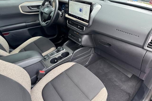 2025 Ford Bronco Sport Big Bend 4WD Shadow Black 1.5L EcoBoost Bronco Sport Big Bend, 4D Sport Utility, 1.5L EcoBoost, 4WD, Shadow Black, Medium Light Smoked Truffle w/Cloth with Easy-to-Clean Front Bucket Seats, 4-Wheel Disc Brakes, 6 Speakers, ABS brakes, Air Conditioning, Alloy wheels, AM/FM radio: SiriusXM, AM/FM Stereo, Auto High-beam Headlights, Automatic temperature control, Brake assist, Cloth w/Easy-to-Clean Front Bucket Seats, Compass, Convenience Package, Delay-off headlights, Driver door bin, Driver vanity mirror, Dual front impact airbags, Dual front side impact airbags, Electronic Stability Control, Emergency communication system: SYNC 4 911 Assist, Four wheel independent suspension, Front anti-roll bar, Front Bucket Seats, Front Center Armrest, Front Driver/Passenger Seat Back Map Pockets, Front reading lights, Fully automatic headlights, Heated 8-Way Power Driver's Seat, Heated door mirrors, Illuminated entry, Knee airbag, LED Fog Lamps, Low tire pressure warning, Occupant sensing airbag, Outside temperature display, Overhead airbag, Overhead console, Panic alarm, Passenger door bin, Passenger vanity mirror, Power door mirrors, Power steering, Power windows, Premium Wrapped Steering Wheel, Radio data system, Rear anti-roll bar, Rear Parking Sensors, Rear reading lights, Rear seat center armrest, Rear window defroster, Rear window wiper, Remote keyless entry, Security system, SiriusXM, Speed control, Speed-sensing steering, Speed-Sensitive Wipers, Split folding rear seat, Steering wheel mounted audio controls, SYNC 4 w/Enhanced Voice Recognition, Tachometer, Telescoping steering wheel, Tilt steering wheel, Traction control, Trip computer, Universal Garage Door Opener (UGDO), Variably intermittent wipers, Wheels: 17 Carbonized Gray-Painted Aluminum, Bronco Sport Big Bend, 4D Sport Utility, 1.5L EcoBoost, 4WD, Shadow Black, Medium Light Smoked Truffle w/Cloth with Easy-to-Clean Front Bucket Seats, 4-Wheel Disc Brakes, 6 Speakers, ABS brakes, Air Conditioning, Alloy wheels, AM/FM radio: SiriusXM, AM/FM Stereo, Auto High-beam Headlights, Automatic temperature control, Brake assist, Cloth w/Easy-to-Clean Front Bucket Seats, Compass, Convenience Package, Delay-off headlights, Driver door bin, Driver vanity mirror, Dual front impact airbags, Dual front side impact airbags, Electronic Stability Control, Emergency communication system: SYNC 4 911 Assist, Four wheel independent suspension, Front anti-roll bar, Front Bucket Seats, Front Center Armrest, Front Driver/Passenger Seat Back Map Pockets, Front reading lights, Fully automatic headlights, Heated 8-Way Power Driver's Seat, Heated door mirrors, Illuminated entry, Knee airbag, LED Fog Lamps, Low tire pressure warning, Occupant sensing airbag, Outside temperature display, Overhead airbag, Overhead console, Panic alarm, Passenger door bin, Passenger vanity mirror, Power door mirrors, Power steering, Power windows, Premium Wrapped Steering Wheel, Radio data system, Rear anti-roll bar, Rear Parking Sensors, Rear reading lights, Rear seat center armrest, Rear window defroster, Rear window wiper, Remote keyless entry, Security system, SiriusXM, Speed control, Speed-sensing steering, Speed-Sensitive Wipers, Split folding rear seat, Steering wheel mounted audio controls, SYNC 4 w/Enhanced Voice Recognition, Tachometer, Telescoping steering wheel, Tilt steering wheel, Traction control, Trip computer, Universal Garage Door Opener (UGDO), Variably intermittent wipers, Wheels: 17 Carbonized Gray-Painted Aluminum. CARFAX One-Owner.